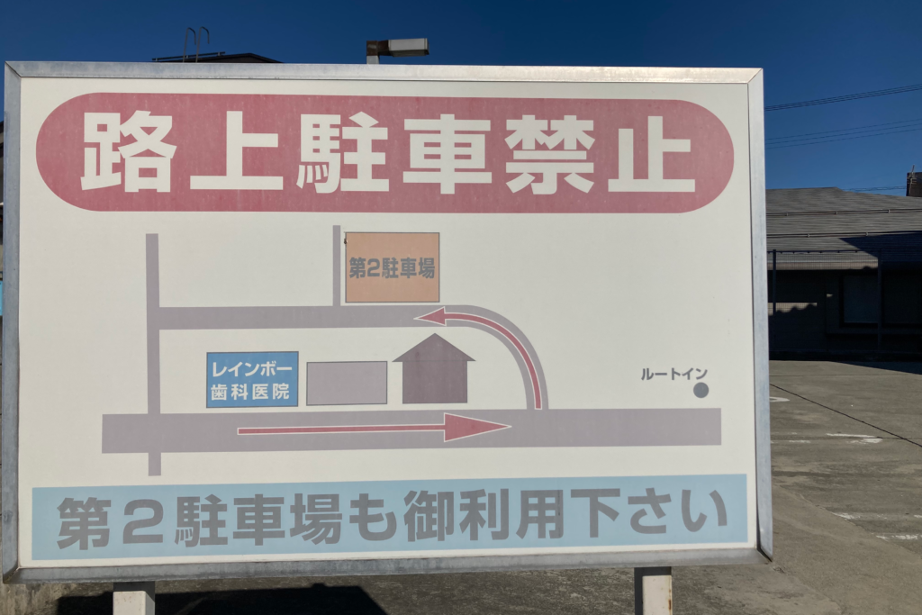 路上駐車は禁止です。お越しの際は第2駐車場の場所をご確認の上お越しください。